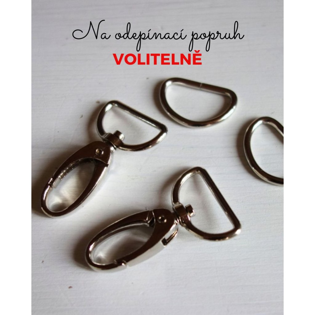 Pokud byste si chtěla ušít ledvinku/taštičku Gregory s odepínacím popruhem, přiobjednejte si do sady 2 karabinky a 2 polokroužky.