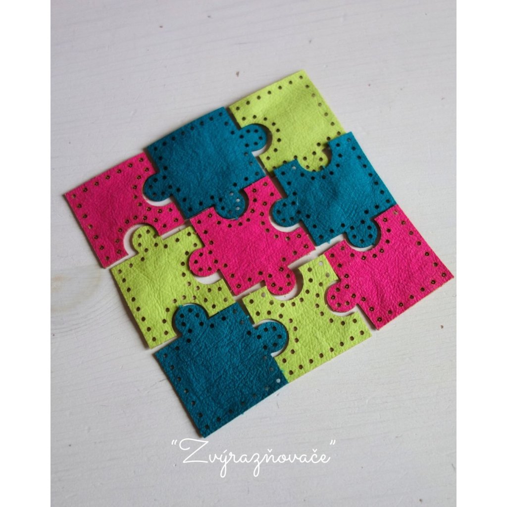 Barevné puzzlíky z pratelného papíru můžete našít kamkoli.